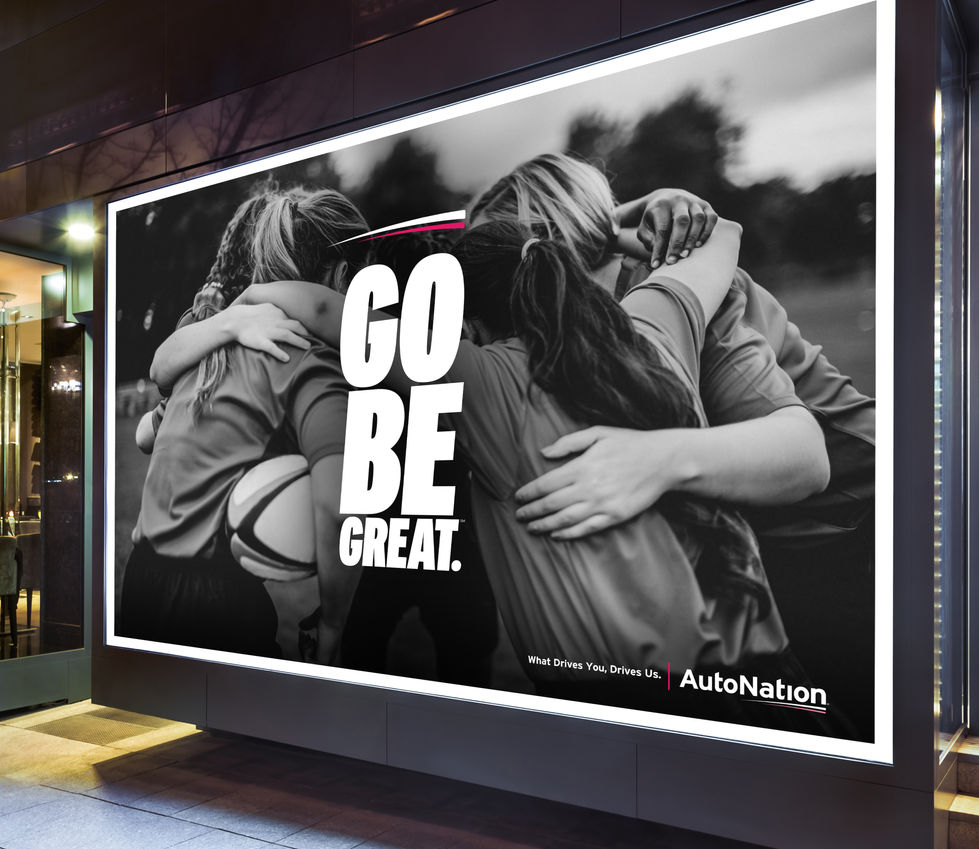 We developed an internal brand for AutoNation called “Go Be Great,” designed to inspire and empower employees to reach their highest potential. The visual identity draws inspiration from brands like Nike and Gatorade—bold, iconic, and energetic—while maintaining a clean, sophisticated aesthetic that reflects AutoNation’s commitment to excellence. To ensure a strong connection to the parent brand, we incorporated AutoNation’s signature Pink Stripes from the original logo, creating a cohesive link between the internal initiative and the company’s broader identity.